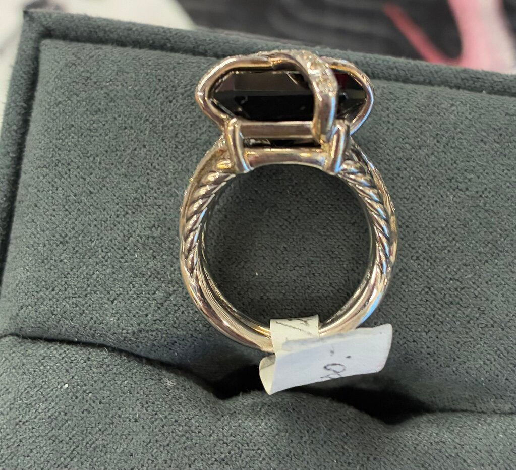 David Yurman Sterling Silver Cable Wrap Onyx & Diamond Cocktail Ring Size 7