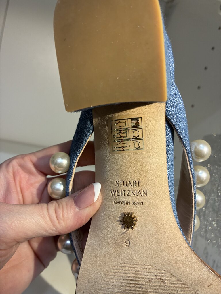 Stuart Weitzman Pearl/Denim Sandals 9